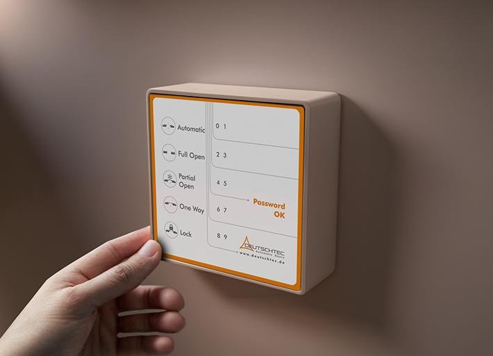 Elektrikli Mod Seçici Anahtar (AH), bir mekanik anahtara benzer işlevsellik sunarak kullanıcının kapı çalışma modunu seçmesine olanak tanır. Ancak, döner anahtar kullanmak yerine, mod ilgili butona basılarak seçilir. Cihaz, farklı yetkilendirme yöntemlerini destekler ve hem şifre korumalı hem de şifresiz modlarda çalıştırılabilir.