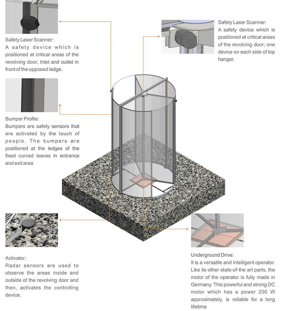 Deutschtec döner kapı sistemleri binanızın girişine zarafet katar, dış cephesine ihtişam verir. Çalışan kısmı yeraltında gizli olan bu model etkili çevre kontrolü ve enfes bir ilk görünümün arzulandığı giriş alanlarına kurulmak için idealdir. Bu modelin ya ince kasa profilleri (RVU300C/RVU400C) ya da kalın kasa profilleri bulunur (RVU300/RVU400). (operatörün yer altında olmasının avantajlarını açıklamaya bile gerek yok)